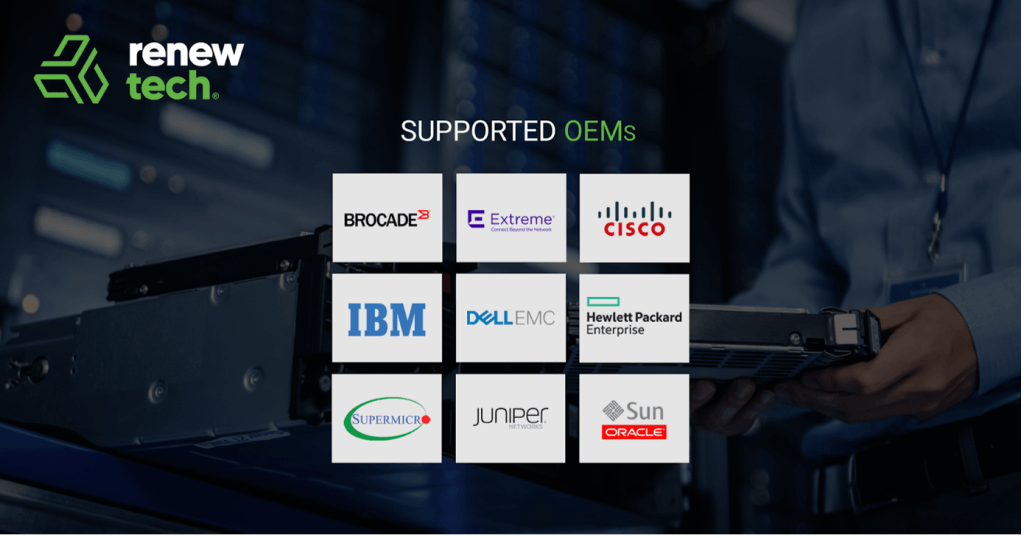 Renewtech erbjuder globalt tredjepartsunderhåll för nätverks-, server- och lagringshårdvara från flera ledande OEMS, vilket framgår av översikten nedan. Oavsett om det är din trådlösa åtkomstpunkt, fiberkanalswitch eller nätverksregulator som har nått slutet av sin ursprungliga garanti, erbjuder Renewtech support och underhåll i världsklass för dessa OEM-tillverkare.